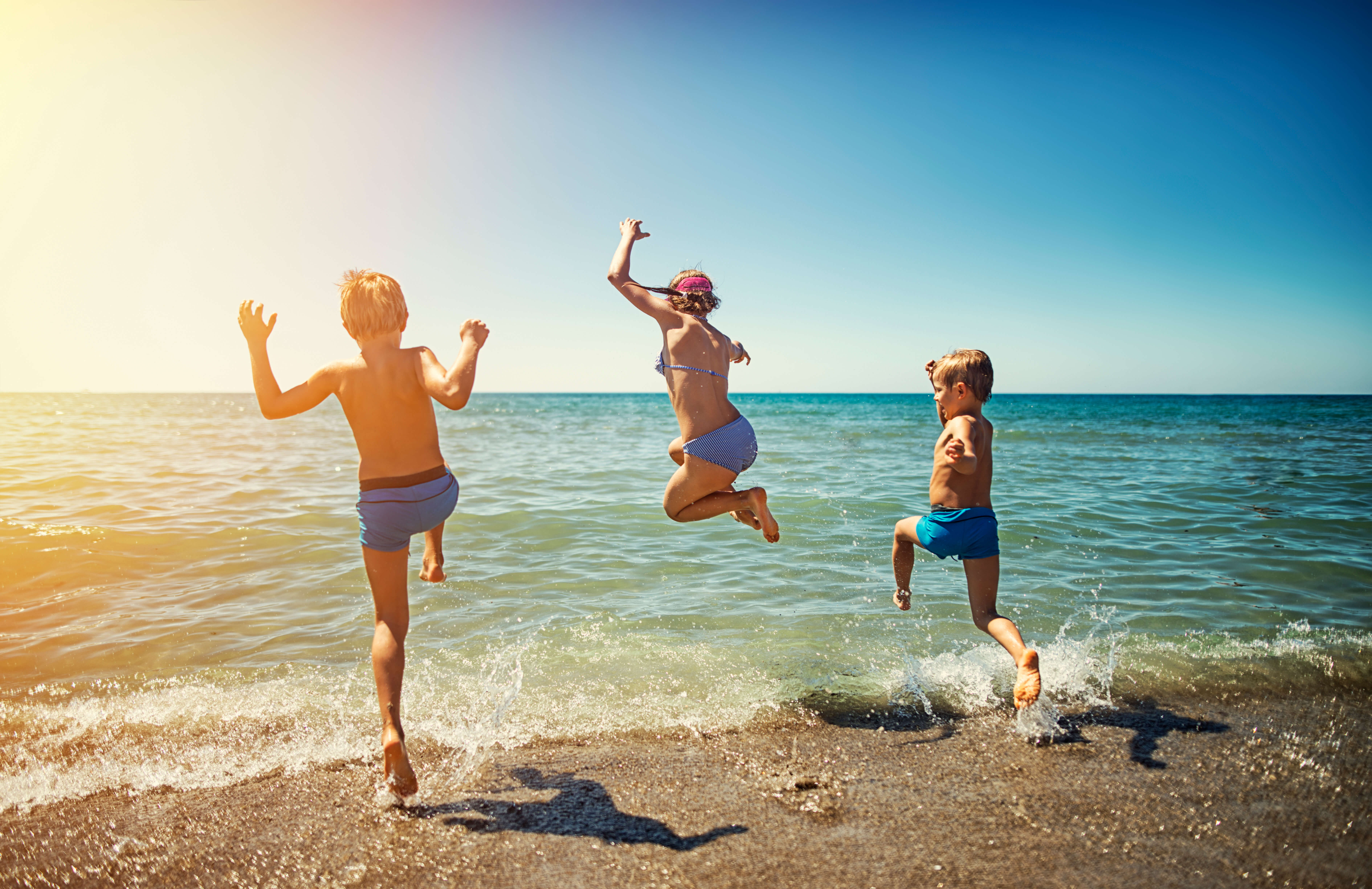 The Internet is full of articles about which type of sun protection you should use for your kids, and it can be overwhelming & confusing — so we’ll make it easy. The Skin Cancer Foundation recommends using a broad spectrum (UVA/UVB) sunscreen with a Sun Protection Factor (SPF) of 15 or higher every single day. For extended high sun activities such as going to the pool or the beach, the Foundation recommends using a water-resistant, broad spectrum (UVA/UVB) sunscreen with an SPF of 30 or higher.
